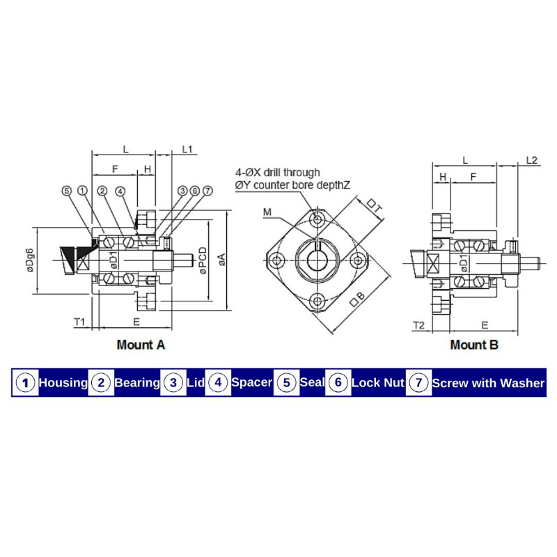 Precision grade equivalent to THK/Hiwin made from steel with a black oxide finish. Bearings are sealed and lubricated and suitable for ballscrews or lead screws to C5 accuracy grade.